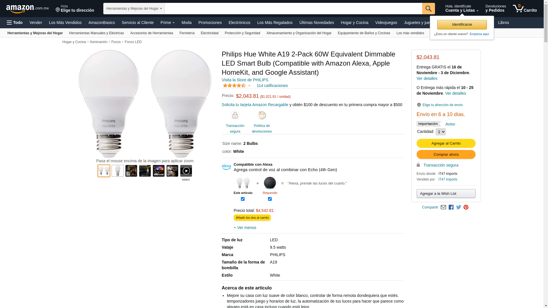 Philips 453100 Hue White A19 2-Pack 60W Equivalent Dimmable LED Smart Bulb (Compatible with Amazon Alexa, Apple HomeKit, and Google Assistant), Soft White, Standard - 2 Pack