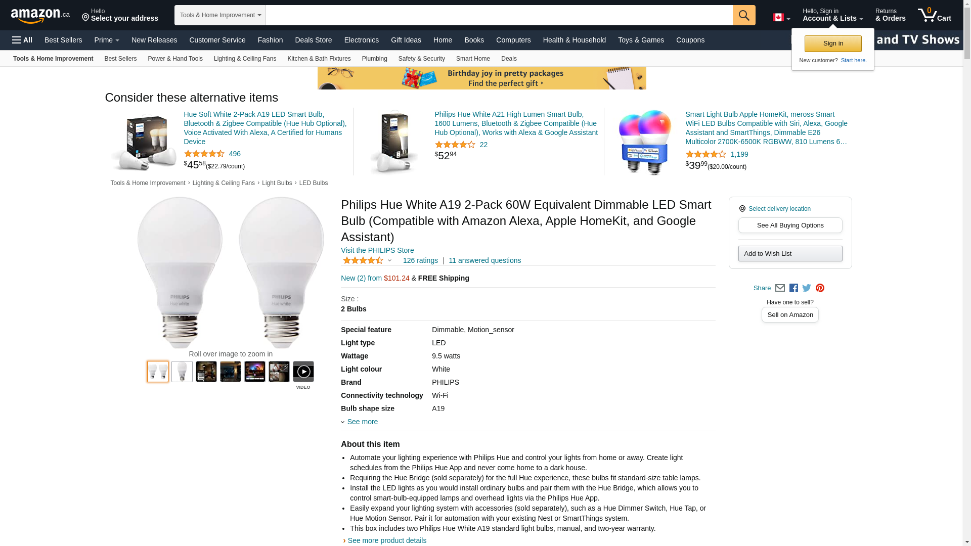Philips Hue A19 LED Bulb (Warm White, 2-Pack)