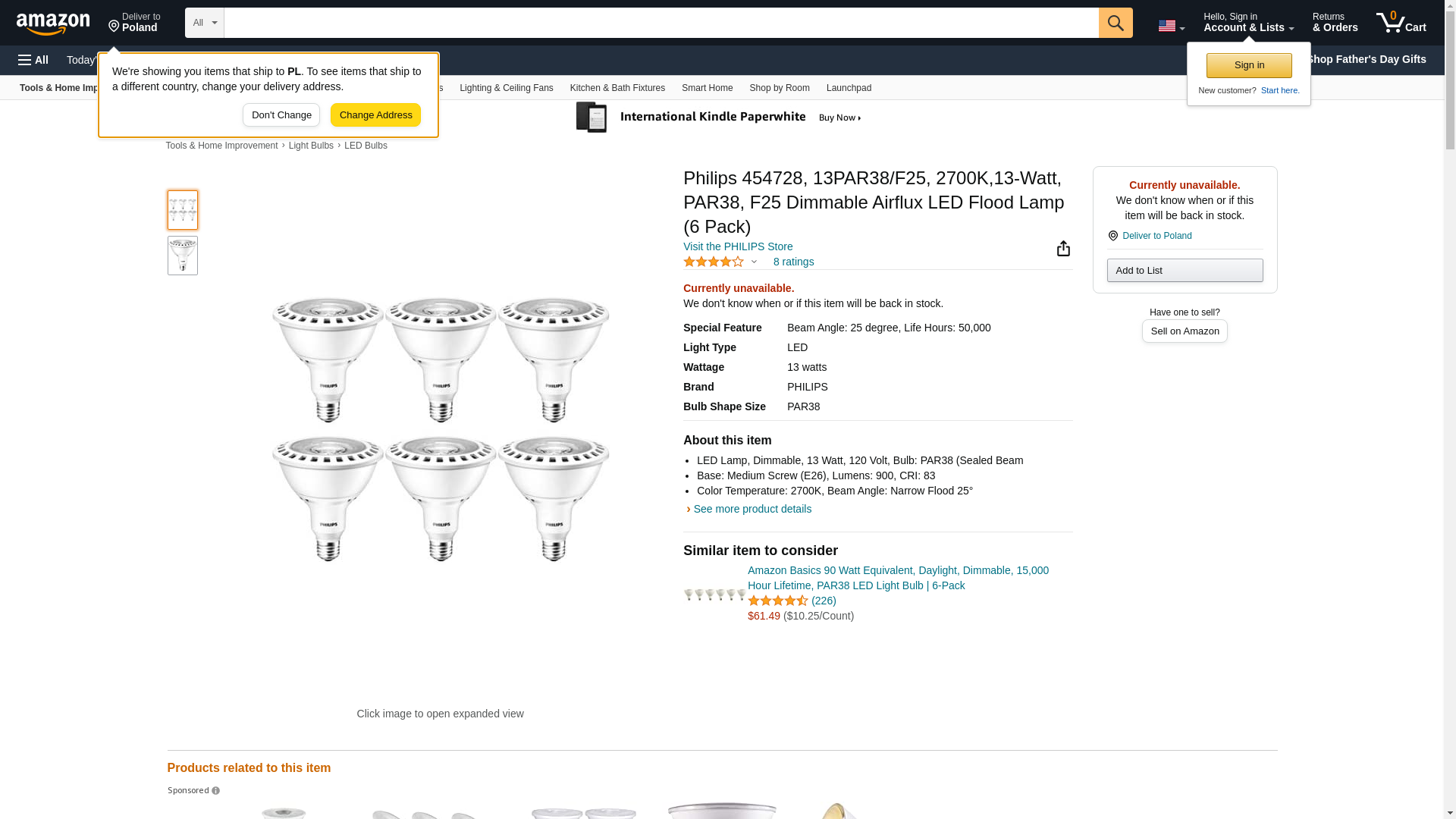 - Color Temperature: 2700K, Beam Angle: Narrow Flood 25°