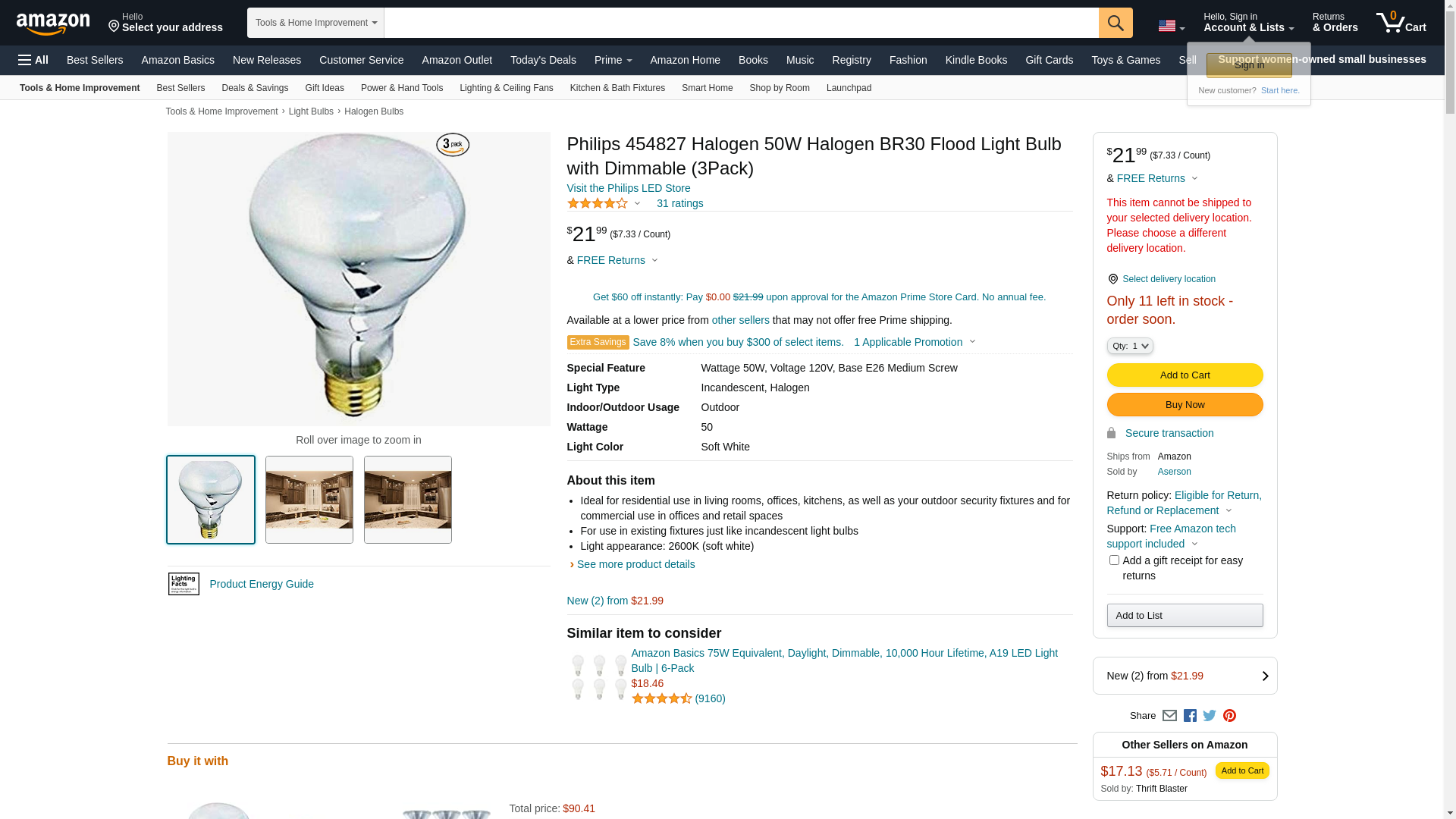 ![]() BulbAmerica | 454827 | 1 | 1 | 1 @ $26.99 | |