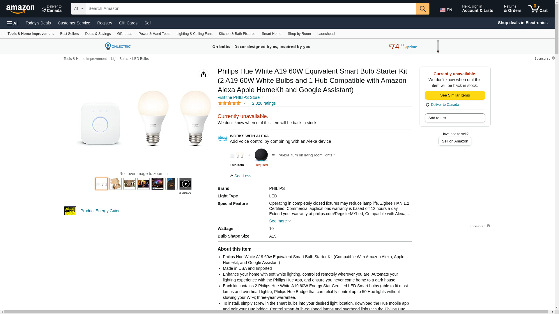 Philips Hue White A19 60W Equivalent Smart Bulb Starter Kit (2 A19 60W White Bulbs and 1 Hub Compatible with Amazon Alexa Apple HomeKit and Google Assistant)