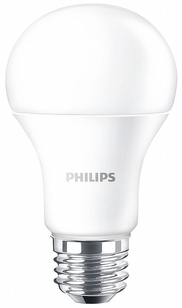 'LED Lamp, Bulb Shape A19, Dimmable No, Glass Bulb Housing, Bulb Base Type Medium Screw (E26), 8.5 Watts, Wattage Equivalency 60W INC/13 to 15W CFL, Bulb Color Temp. 2700K, LED, Light Appearance 2700 to 2999K, Soft White, Average Bulb Life 10, 000 hr., Color Rendering Index 80, Bulb Type Standard, Lumens 800, Voltage 120, Max. Overall Bulb Length 4-19/64 In.'