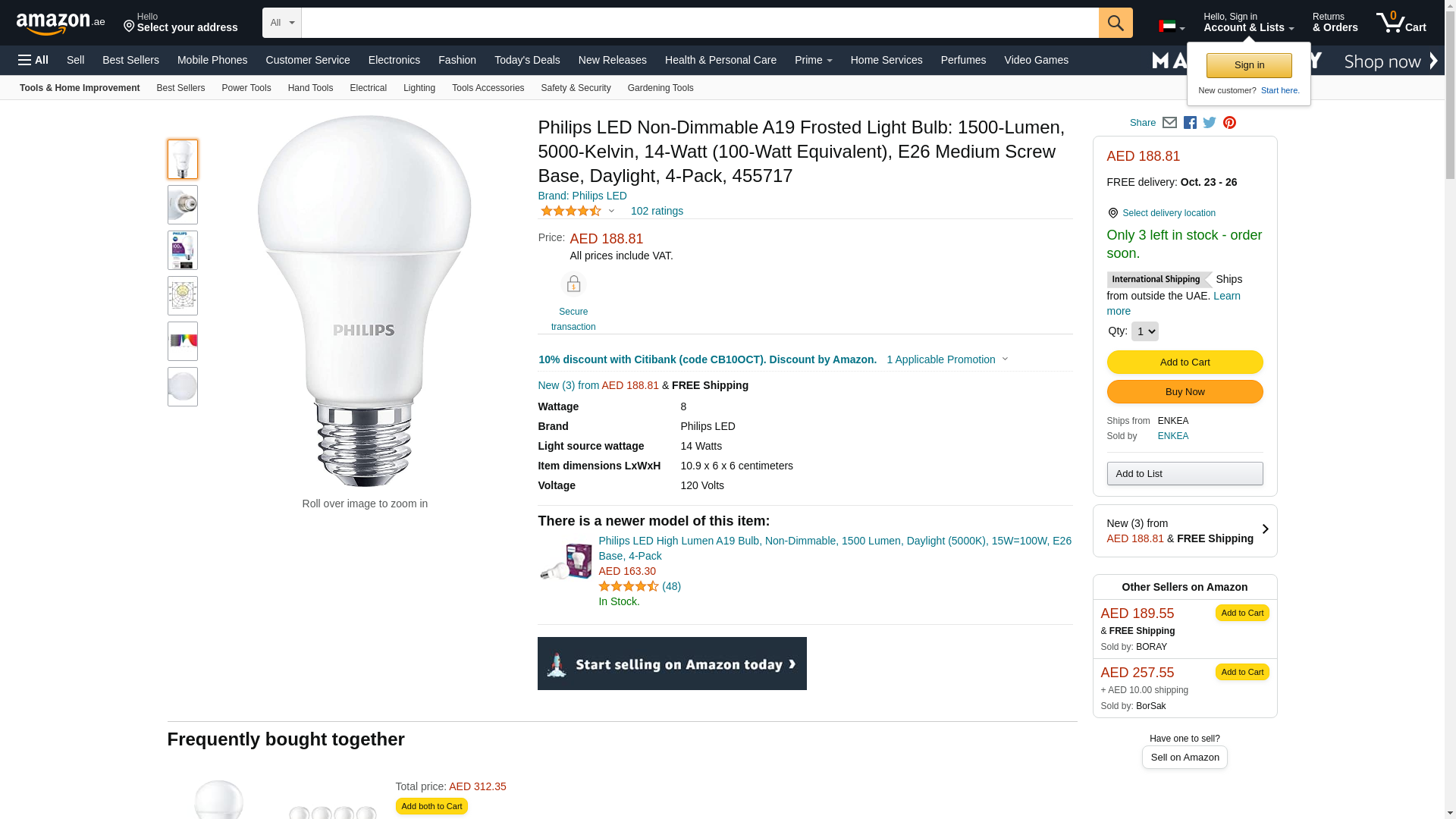 ![]() BulbAmerica | 455717 | 1 | 1 | 1 @ $16.99 | |