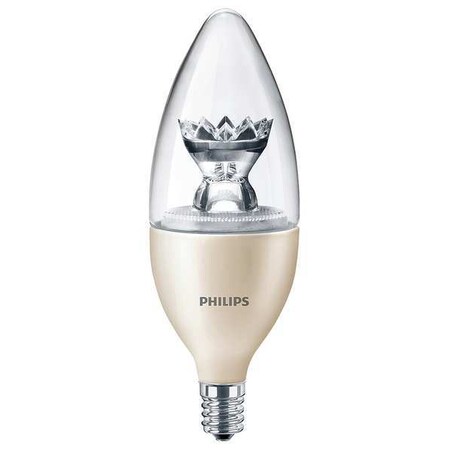 | Feature | Philips B12 LED light bulbs with Warm Glow Effect provide 330 lumens of soft white light, equivalent to 40-Watt incandescents with 80% less energy use. These bulbs fit small candelabra (E12) fixtures with the look and feel of a classic bulb. |