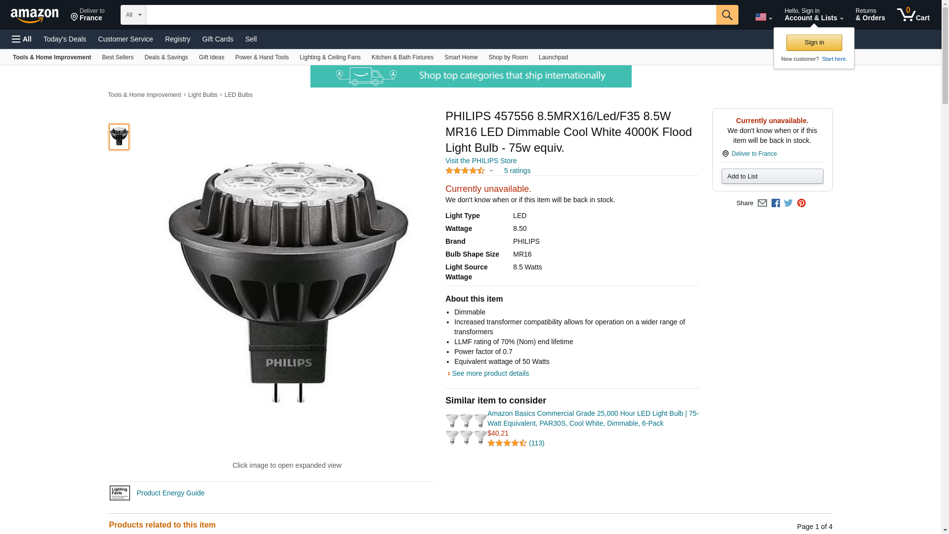 Philips Lighting 8.5-Watt MR16 GU5.3 LED Lamp offers 710 Lumens of light output. It has color rendering index of 80. Lamp with 4000K color temperature rating radiates white light to the surrounding. It has voltage rating of 12 Volts at 60 Hz and current rating of 900 Milli-Amps. Lamp in white color, has efficacy of 84 LPW and comes with average life of 25000 hours. This lamp has overall length of 55 mm. It emits or distributes light at beam angle of 35 degree. It is perfect for accent lighting a