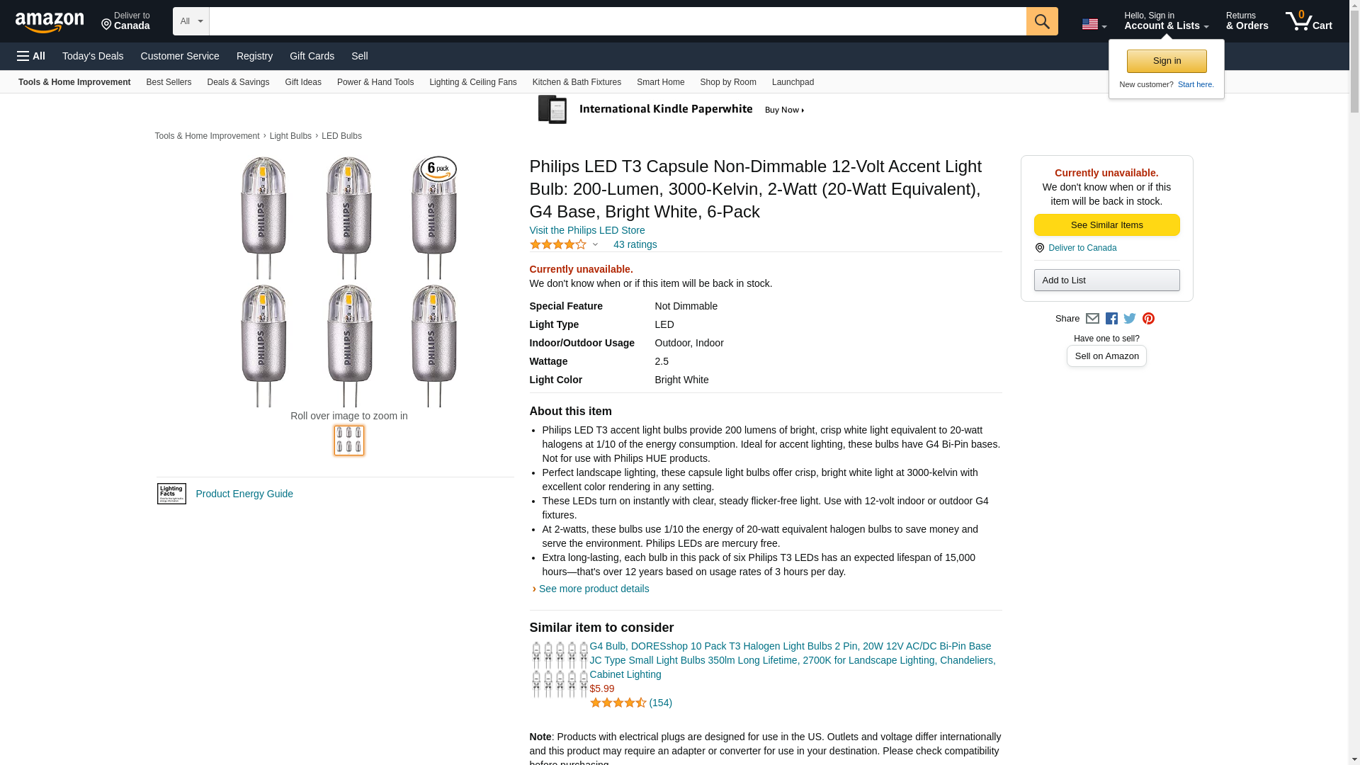Philips LED T3 Capsule Non-Dimmable 12-Volt Accent Light Bulb: 200-Lumen, 3000-Kelvin, 2-Watt (20-Watt Equivalent), G4 Base, Bright White, 6-Pack