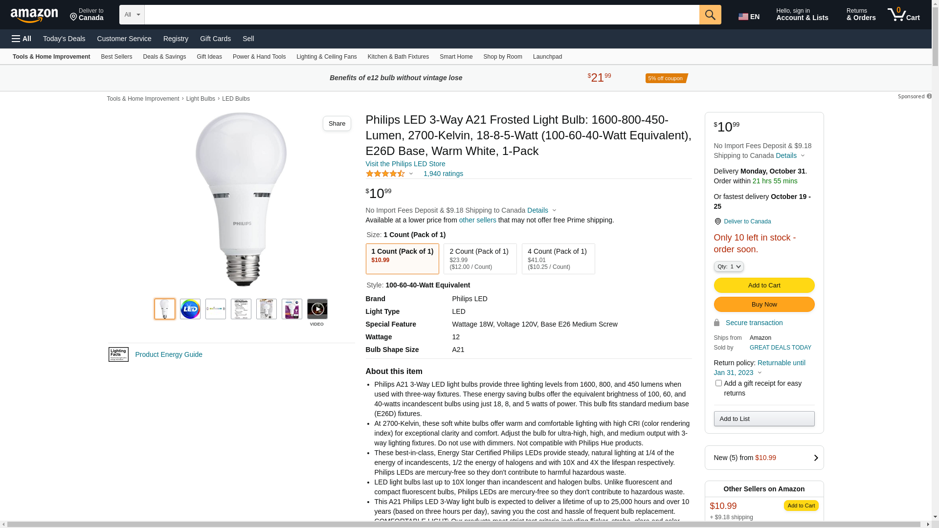 - This A21 Philips LED 3-Way light bulb is expected to deliver a lifetime of up to 25,000 hours and over 10 years (based on three hours per day), saving you the cost and hassle of frequent bulb replacement.