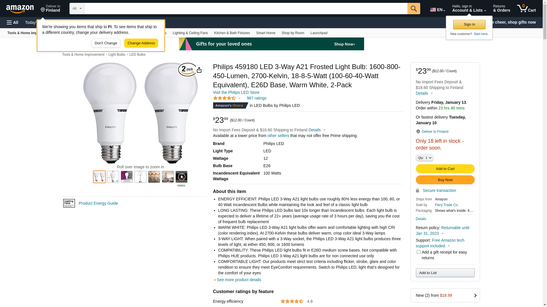 Philips Lighting 459180 :: PHI 18A21/AMB/827 3WAY ND 2PK