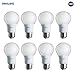 | Feature | Philips A19 LED light bulbs provide 450 lumens of cool, full-spectrum light, equivalent to 40-watt incandescents with 80% less energy use. These bulbs fit standard medium base (E26) fixtures with the look and feel of a classic bulb. Not for use with Philips HUE products. |