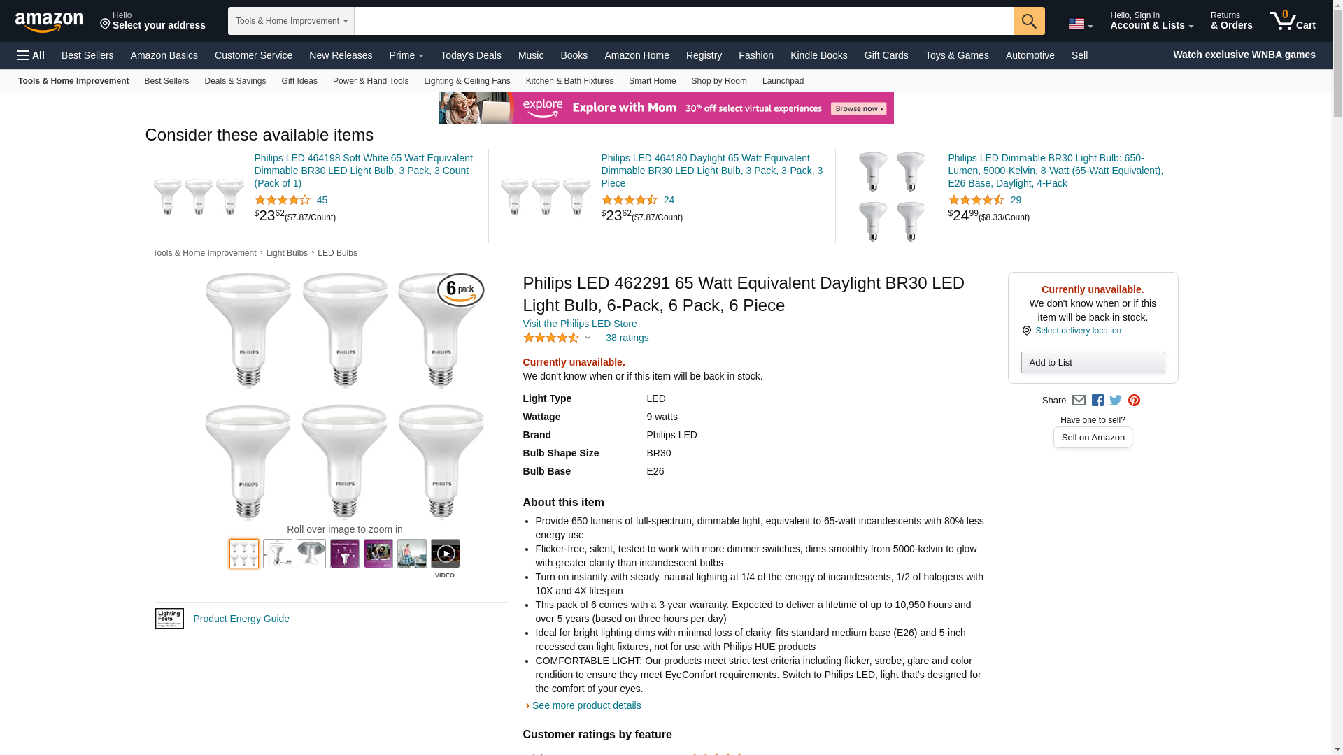 | Feature | 65 WATT REPLACEMENT BULB: This Philips BR30 LED bulb turns on at full brightness with 650 lumens and replaces a traditional 65 Watt incandescent bulb |