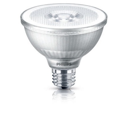 - Philips PAR30S LED classic glass light bulbs spotlight the details in your home with a 40-degree beam angle and 850 lumens of cool white, dimmable light, equivalent to 75-watt incandescents with 80% less energy use. Appropriate for indoor and outdoor use, these shorter PAR30 bulbs fit medium base (E26) fixtures and measure 3.5 inches tall with a bulb diameter of 3.66 inches.