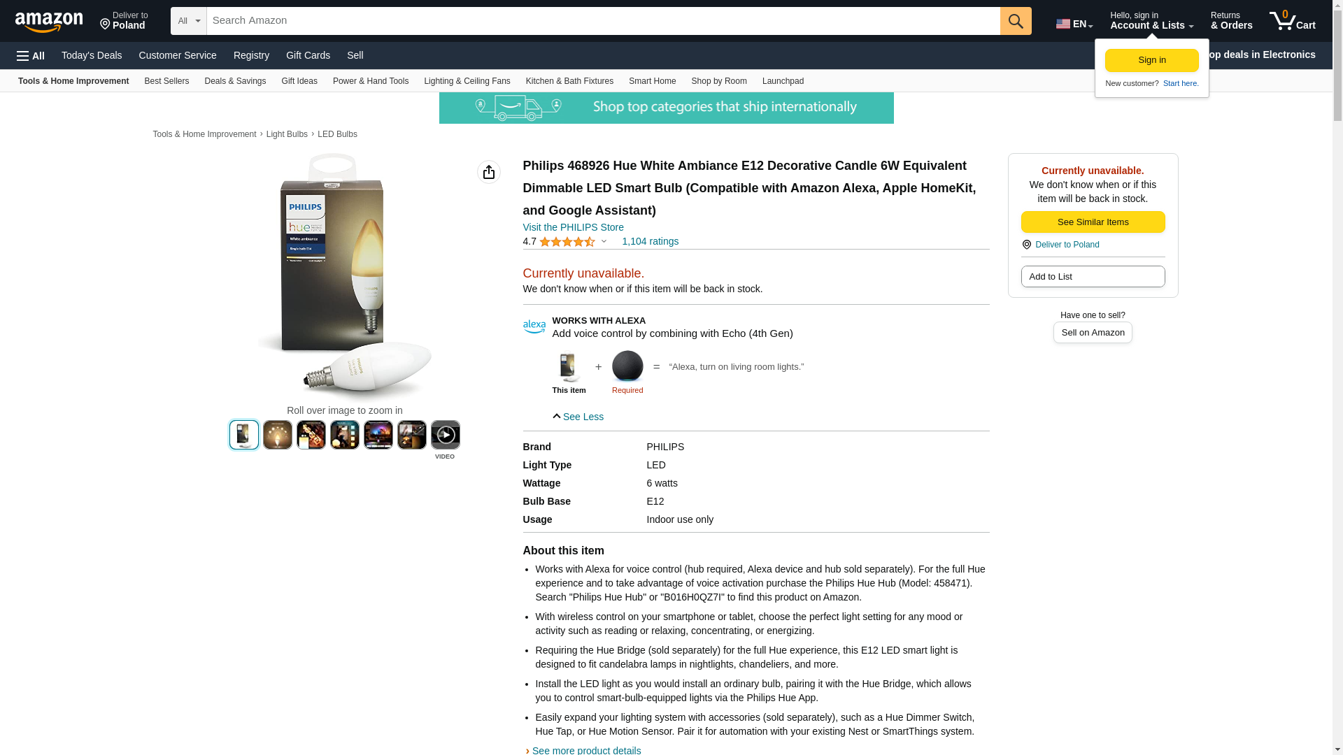 - Requiring the Hue Bridge (sold separately) for the full Hue experience, this E12 LED smart light is designed to fit candelabra lamps in nightlights, chandeliers, and more.