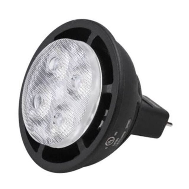 'LED Lamp, Bulb Shape MR16, Dimmable Yes, Metal Bulb Housing, Bulb Base Type 2-Pin (GU5.3), 6.4 Watts, Wattage Equivalency 35W HAL, Bulb Color Temp. 3000K, LED, Light Appearance 3000 to 3999K, Warm White, Average Bulb Life 25,000 hr., Color Rendering Index 80.0, Bulb Type Reflector, Bulb Beam Angle 35 Degrees , Lumens 420, Light Distribution Flood, Voltage 12, Max. Overall Bulb Length 1-29/32 In., Light Bulb Dia. 2 In.'