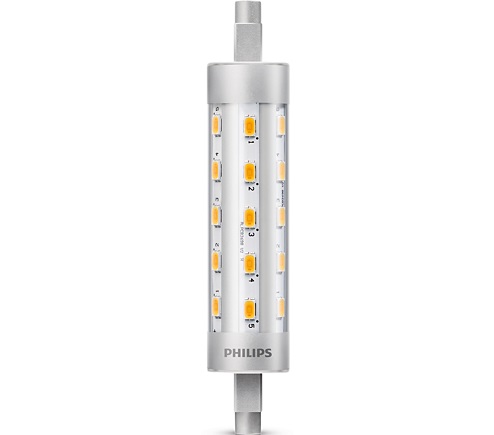 <p>Philips non-dimmable 7.5 watt double-ended LED capsule with R7S base is equivalent to a 100 watt halogen equivalent. </p><ul><li>Title 20 compliant</li><li>Saves 92.5 watts compared to a 100 watt halogen</li><li>No lead or mercury means easy and environmentally safe disposal</li><li>Should be used in dry locations only</li><li>Very long life - Rated to still put out 70% as much light after 15,000 hours as it did when brand new</li></ul><p>Do not use in enclosed fixtures because heat build up will shorten life. Do not "hot swap" this bulb. Turn off the fixture before replacing the bulb.</p><p> </p>