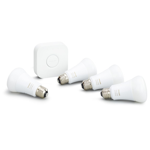 - With everything you need to get started, this easy-to-use kit comes with four A19 LED smart bulbs, able to fit standard table lamps and the Philips Hue Bridge that can control up to 50 lights