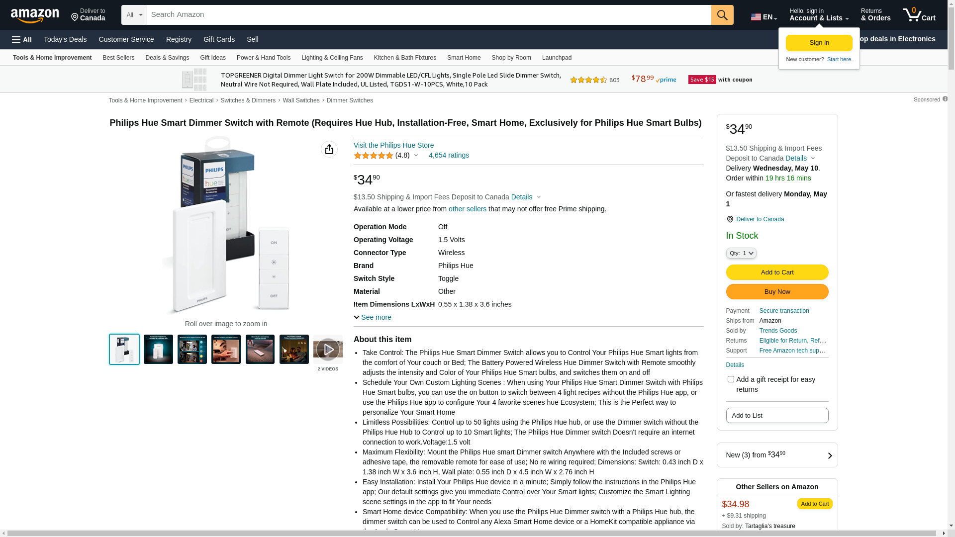 - Limitless Possibilities: Control up to 50 lights using the Philips Hue hub, or use the Dimmer switch without the Philips Hue Hub to Control up to 10 Smart lights; The Philips Hue Dimmer switch Doesn't require an internet connection to work.Voltage:1.5 volt