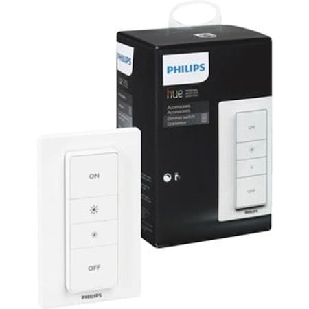 - Take Control: The Philips Hue Smart Dimmer Switch allows you to Control Your Philips Hue Smart lights from the comfort of Your couch or Bed; The Battery Powered Wireless Hue Dimmer Switch with Remote smoothly adjusts the intensity and Color of Your Philips Hue Smart bulbs, and switches them on and off