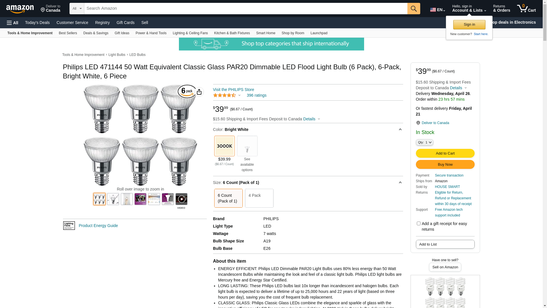Philips LED 471144 50 Watt Equivalent Classic Glass PAR20 Dimmable LED Flood Light Bulb (6 Pack), 6-Pack, Bright White, 6 Piece