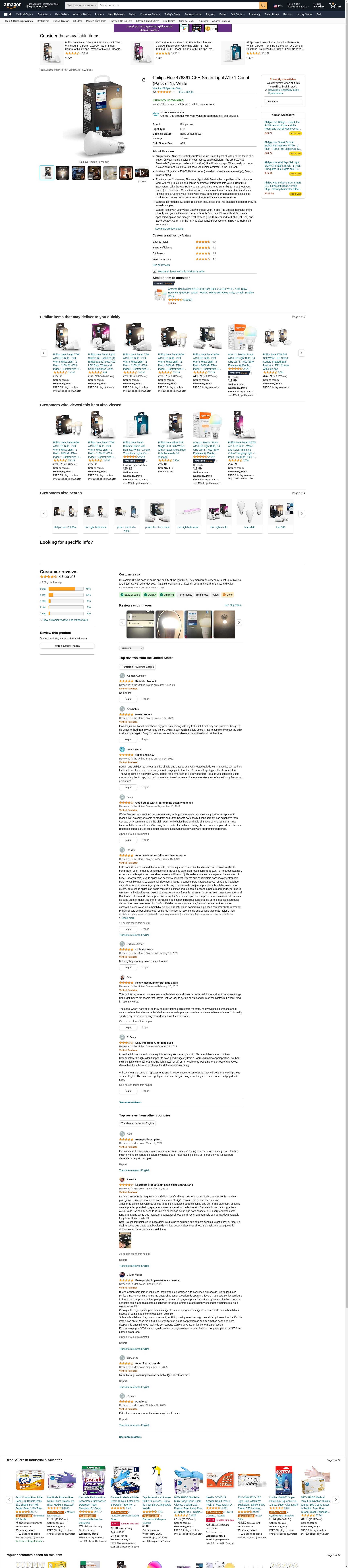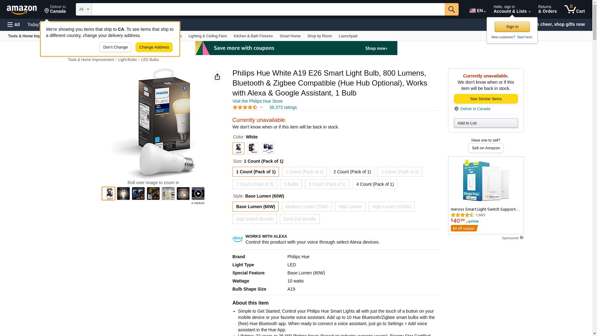 Philips Hue 476861 Smart Light A19, 1 Count (Pack of 1), White