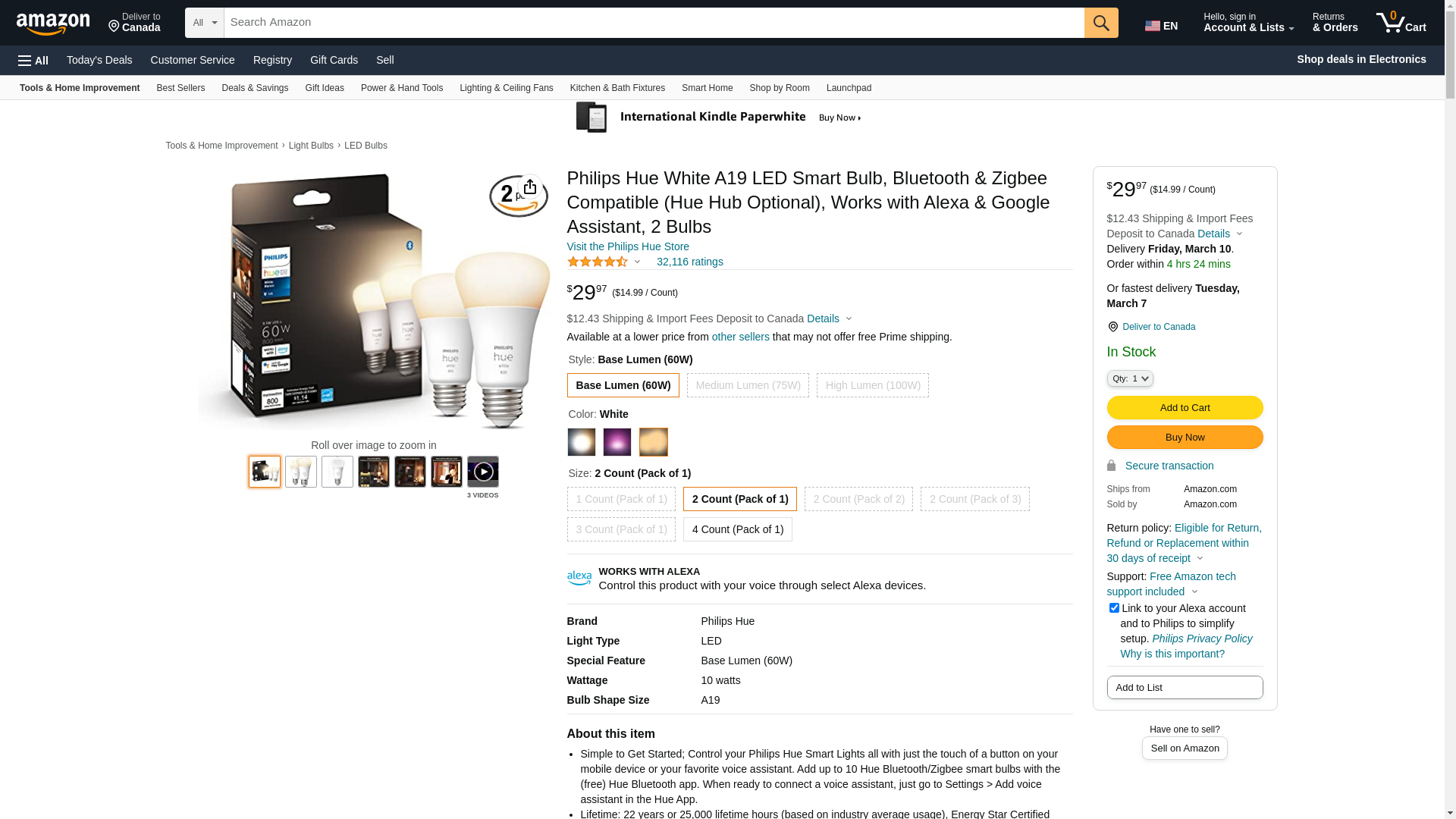 Philips Hue Smart 60W A19 LED Bulb - Soft Warm White Light - 2 Pack - 800LM - E26 - Indoor - Control with Hue App - Works with Alexa, Google Assistant and Apple Homekit