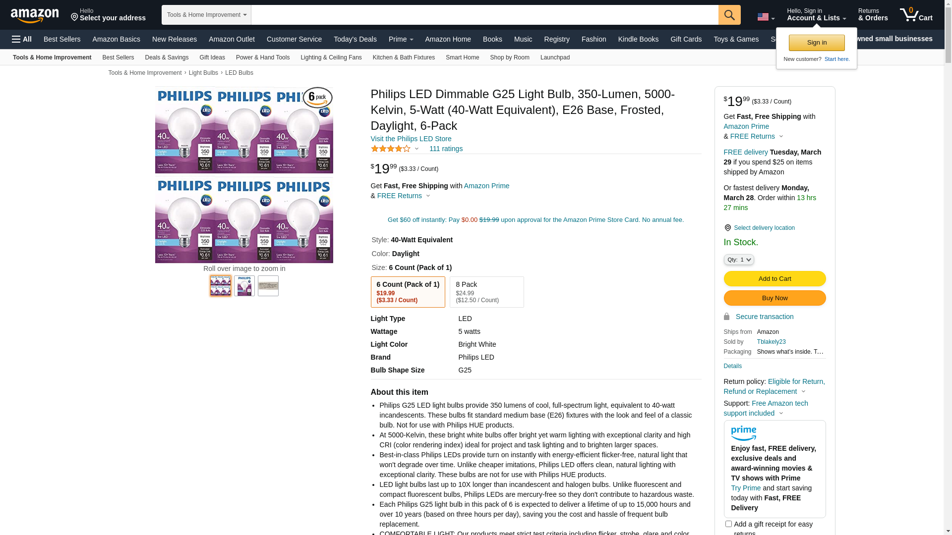 - This pack of 6 G25 Philips LEDs comes with a 3-year warranty. Each bulb is expected to deliver a lifetime of up to 15,000 hours and over 10 years (based on three hours per day), saving you the cost and hassle of frequent bulb replacement.