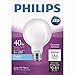- Philips G25 LED light bulbs provide 350 lumens of cool, full-spectrum light, equivalent to 40-watt incandescents. These bulbs fit standard medium base (E26) fixtures with the look and feel of a classic bulb. Not for use with Philips HUE products.