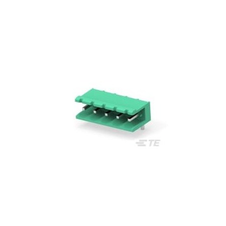 | Feature | Manufacturer: TE Connectivity RoHS: Product: Pluggable Terminal Blocks Number of Positions / Contacts: 5 Pitch: 5.08 mm Current Rating: 15 A Voltage Rating: 300 VAC Mounting Angle: Right Contact Plating: Tin Color: Green Contact Material: Phosphor Bronze Flammability Rating: UL 94 V-0 Housing Material: Polyamide (PA) Type: Header |