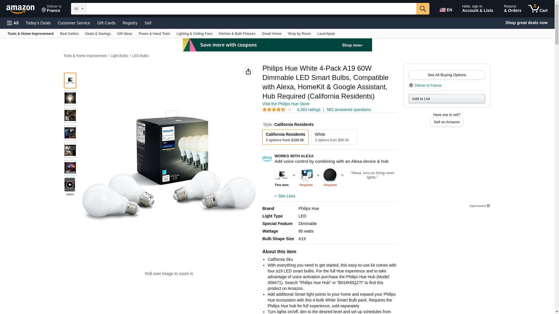 - Add additional Smart light points to your home and expand your Philips Hue ecosystem with this 4-bulb White Smart Bulb pack. Requires the Philips Hue hub for full experience, sold separately