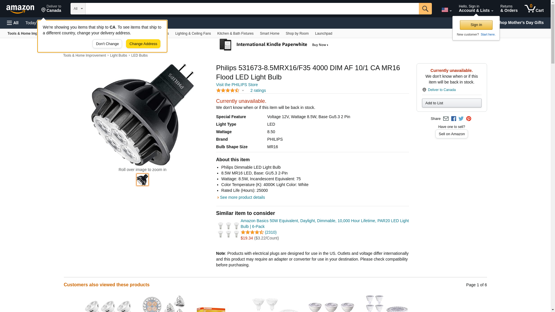 Philips 531673-8.5MRX16/F35 4000 DIM AF 10/1 CA MR16 Flood LED Light Bulb