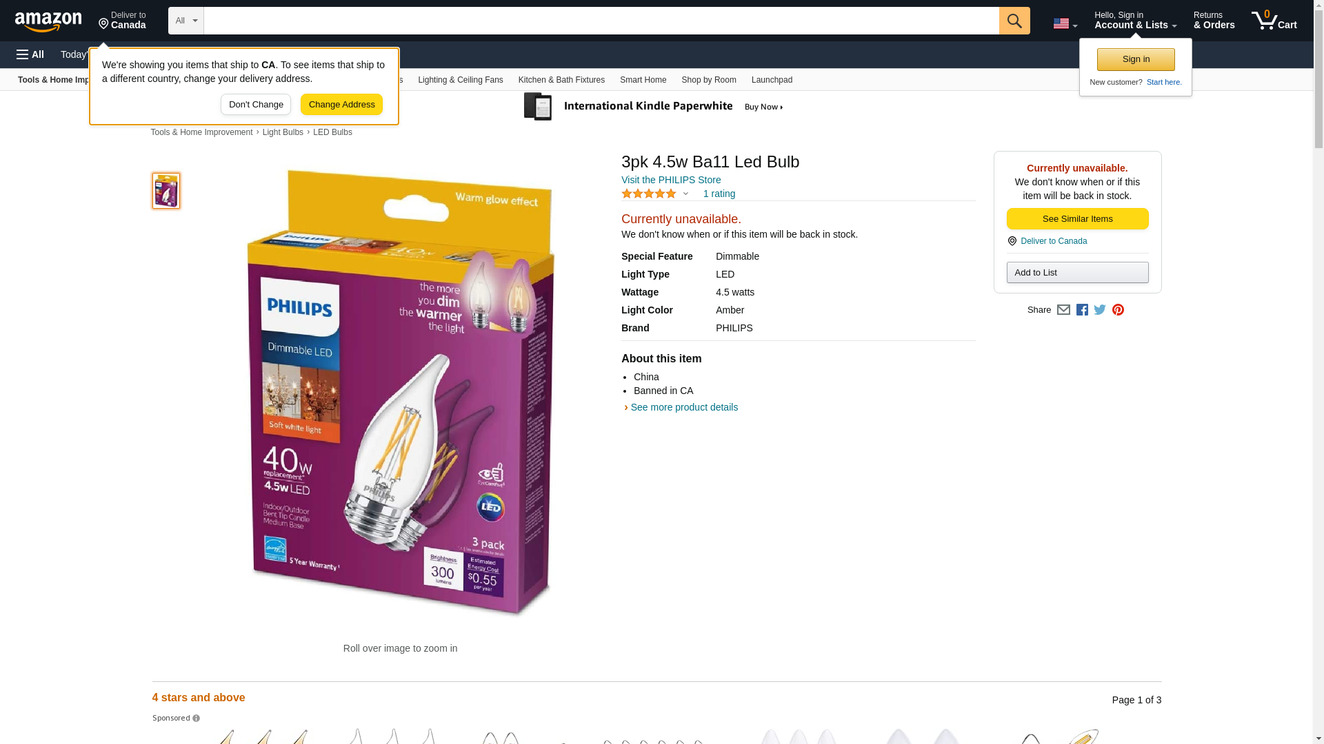 Philips 4.5-Watt B11 LED Light Bulb, 300 Lumens, Soft White, Decorative, 40-Watt Equivalent, 3-Pack