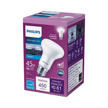 - DAYLIGHT: Philips LED Non-Dimmable R20 Light Bulbs offer warm and comfortable lighting with high CRI (color rendering index). At 5000 Kelvin the bulbs deliver bright, crisp color ideal for project and task lighting and to brighten larger spaces.