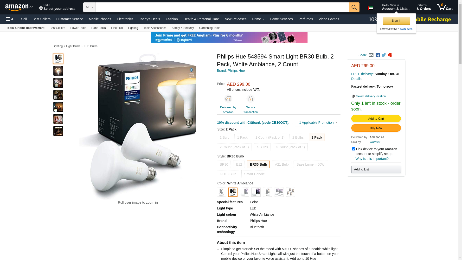 Philips Hue White Ambiance BR30 LED Smart Bulbs, Bluetooth & Zigbee Compatible (Hue Hub Optional), Works with Alexa & Google Assistant, Old Version, 2 Bulbs