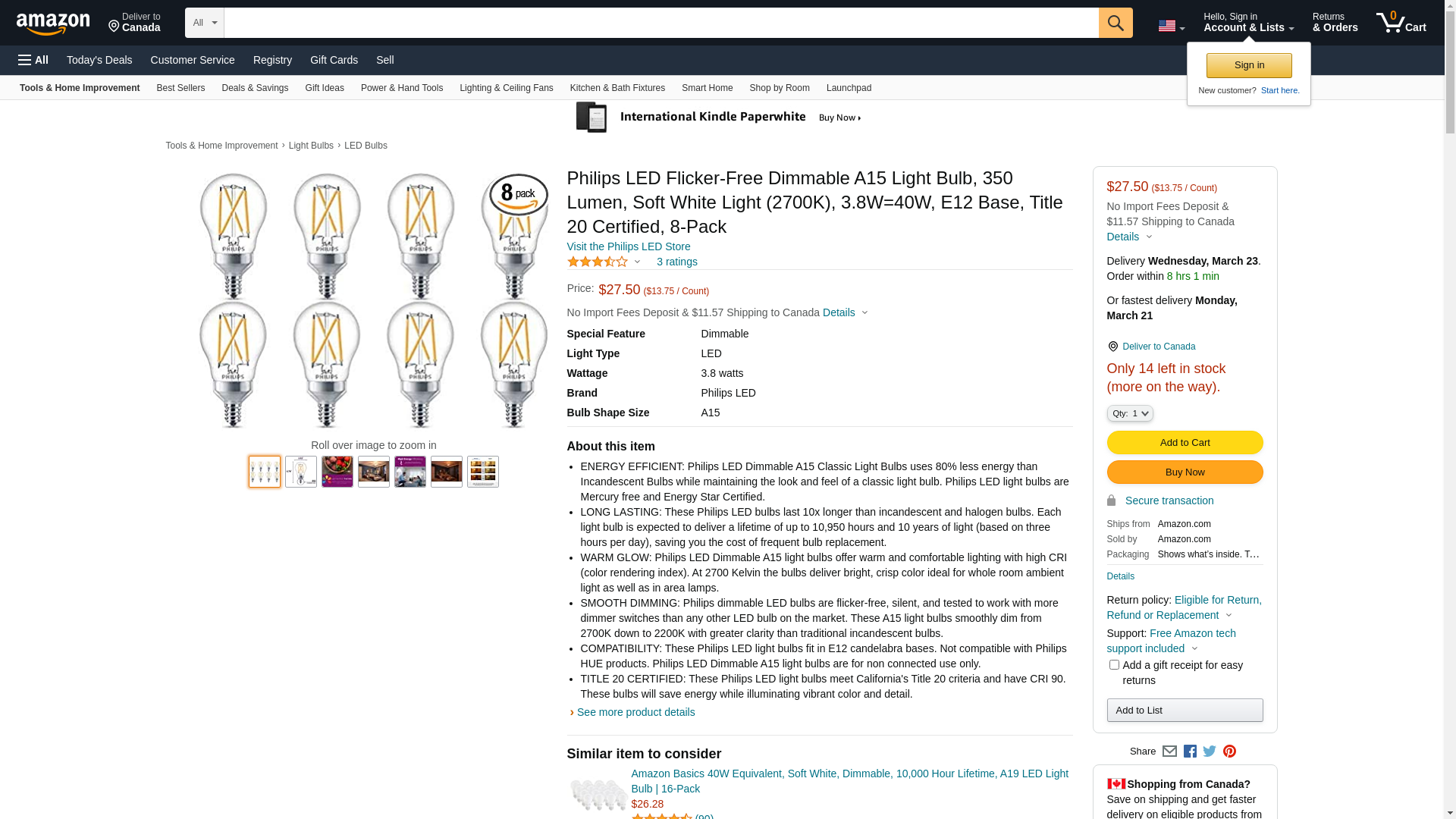 Philips LED Flicker-Free Dimmable A15 Light Bulb, 350 Lumen, Soft White Light (2700K), 3.8W=40W, E12 Base, Title 20 Certified, 8-Pack