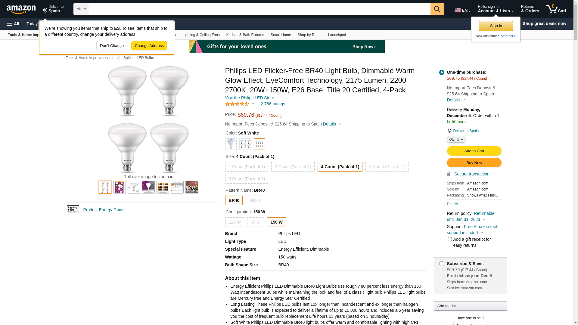 Philips LED Flicker-Free BR40 Light Bulb, Dimmable Warm Glow Effect, EyeComfort Technology, 2175 Lumen, 2200-2700K, 20W=150W, E26 Base, Title 20 Certified, 4-Pack,Soft White