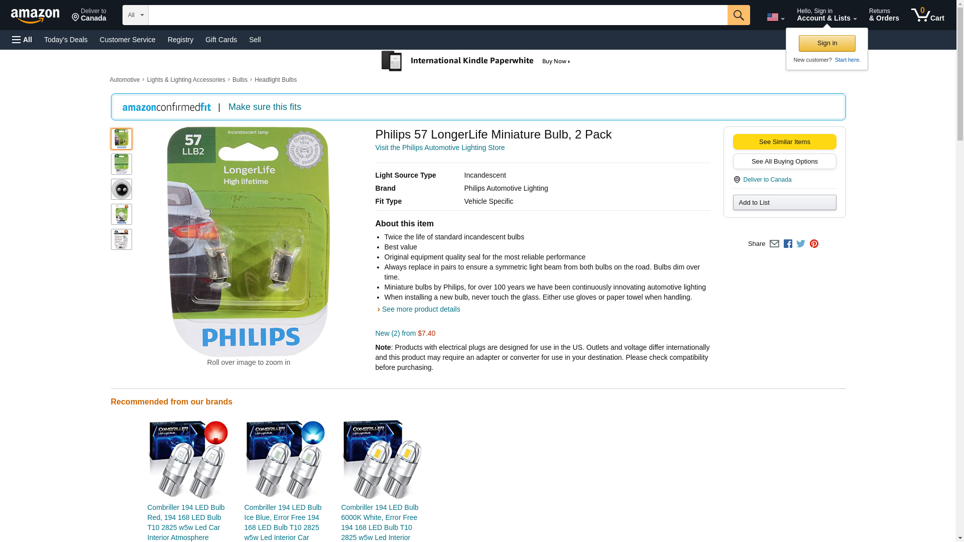 Philips 57 LongerLife Miniature Bulb, 2 Pack