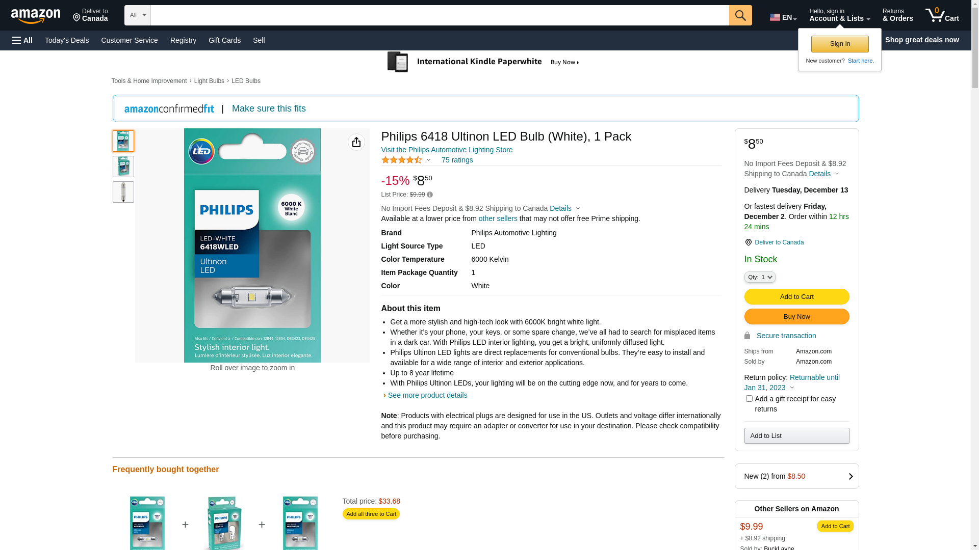 | AutoBarn | PHL6418WLED | 1 | -2 | 1 | 1 @ $8.99 |