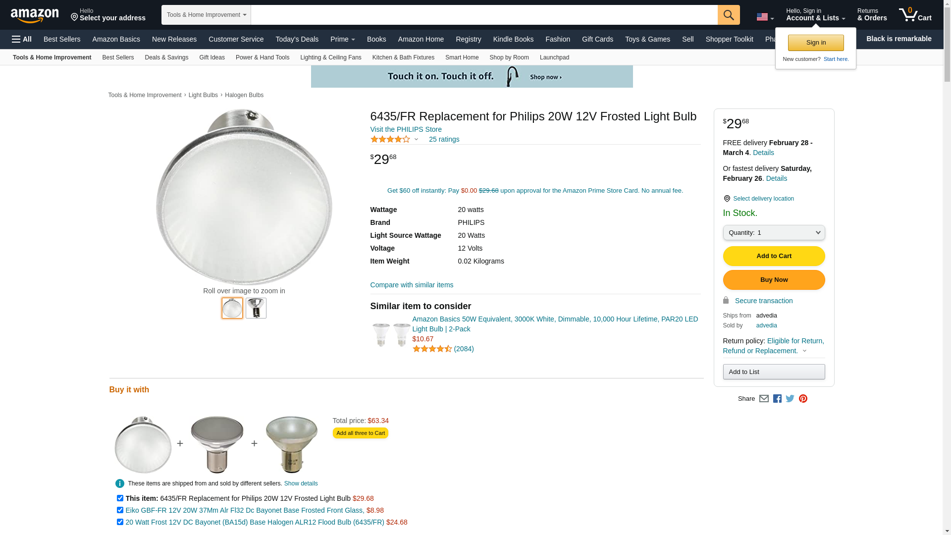 Replacement for Philips 6435/FR Frosted Halogen Light Bulb 20W 12V – Payless4Lighting
