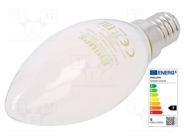 As an Amazon Associate, we earn from qualifying purchases. PHILIPS 8718699763398 | LED lamp; warm white; E14; 230VAC; 470lm; P: 4.3W; 2700K; CRImin: 80 PHILIPS . 8718699763398 Gallery Attributes Brand name, Manufacturer name, Manufacturer, Attribute00PHILIPS Attribute01LED lamp Attribute02warm white Attribute03E14 Attribute04230V AC Attribute05470lm Attribute064.3W Attribute0797mm Attribute0835mm Attribute092700K Attribute1080 Attribute1140W Attribute12F AttributeKey00Manufacturer AttributeKey01Type of lamp AttributeKey02Colour AttributeKey03Kind of handle AttributeKey04Rated voltage AttributeKey05Luminosity AttributeKey06Power consumption AttributeKey07, length_AttribLength AttributeKey08, height_Attrib, width_AttribDiameter AttributeKey09Colour temperature AttributeKey10Min. colour rendering index AttributeKey11Equivalent to the power of a traditional light bulb AttributeKey12Energy class CategoryL1Light sources CategoryL2Light sources - lighting DimensionUnitmm Extra Product NamePHILIPS 8718699763398 | LED lamp; warm white; E14; 230VAC; 470lm; P: 4.3W; 2700K; CRImin: 80 atoms, moq, multiple1 diameter, height, width35.0 jsonUrlData3966bd28edd97c212601f92689405951. jsonUrlData2f045d26772725669a06c keywordsPHILIPS, 8718699763398, 76339800 length97.0 MPN8718699763398 qtyInStock24 SKU76339800 snippetPHILIPS 8718699763398 | LED lamp; warm white; E14; 230VAC; 470lm; P: 4.3W; 2700K; CRImin: 8 Distributor offers SellerSKUMOQIn stockMultiplePrices TME763398001241