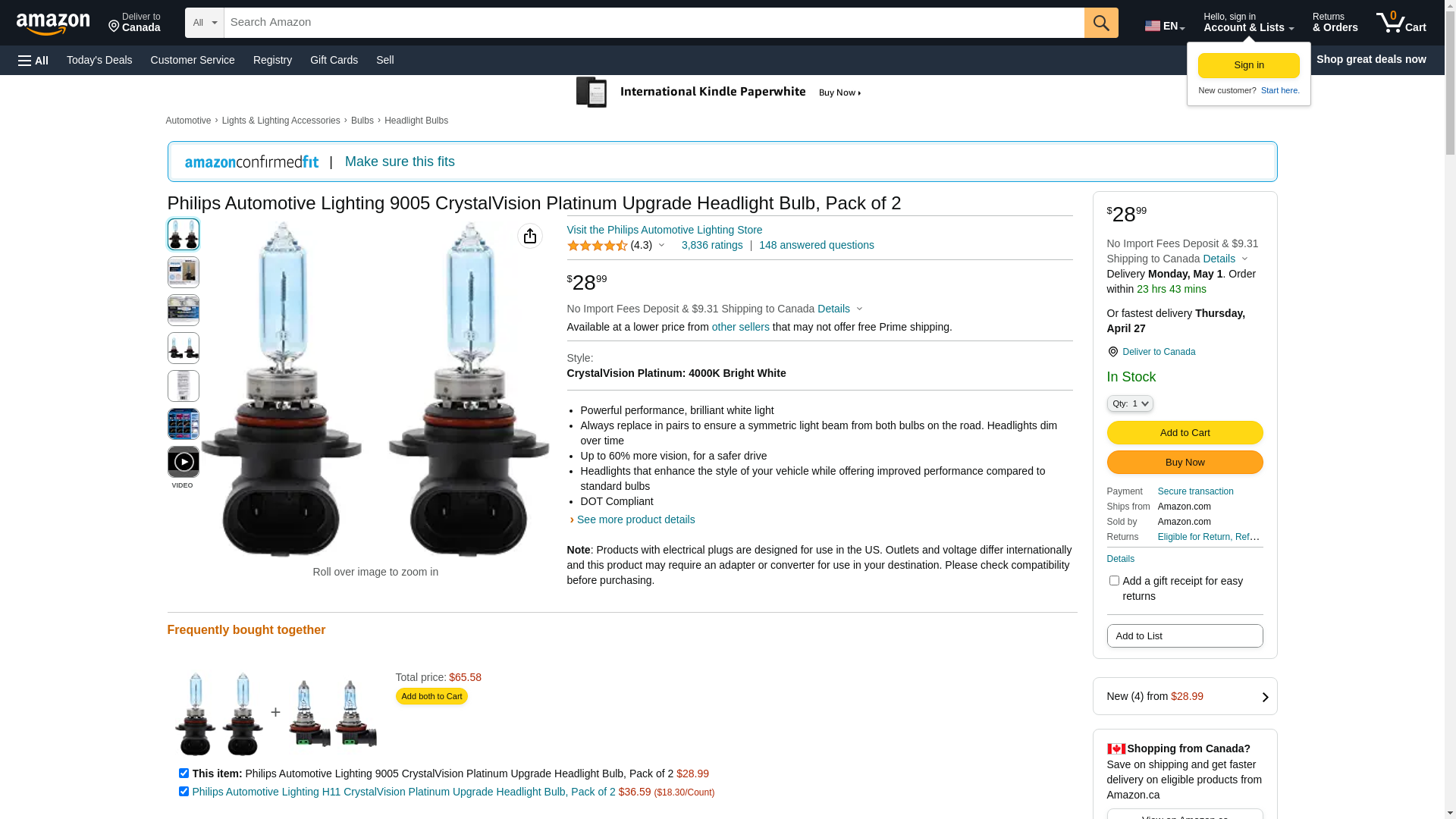 ![]() bulbs.com | 9005CVB2 | 1 | Clearance Item | 1 | 1 @ $31.18 |