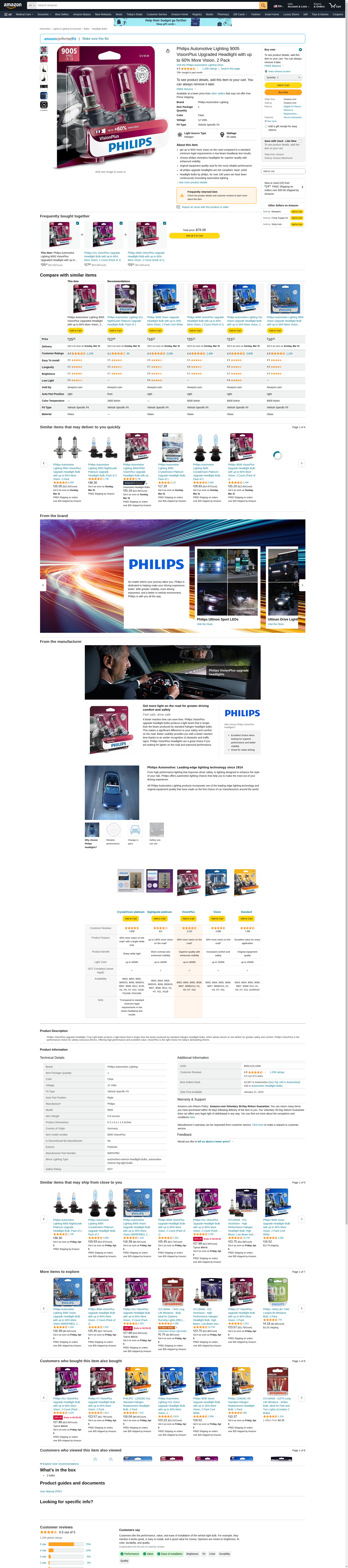 Philips 9005 VisionPlus Upgrade Headlight with up to 60% More Vision, 2 Pack