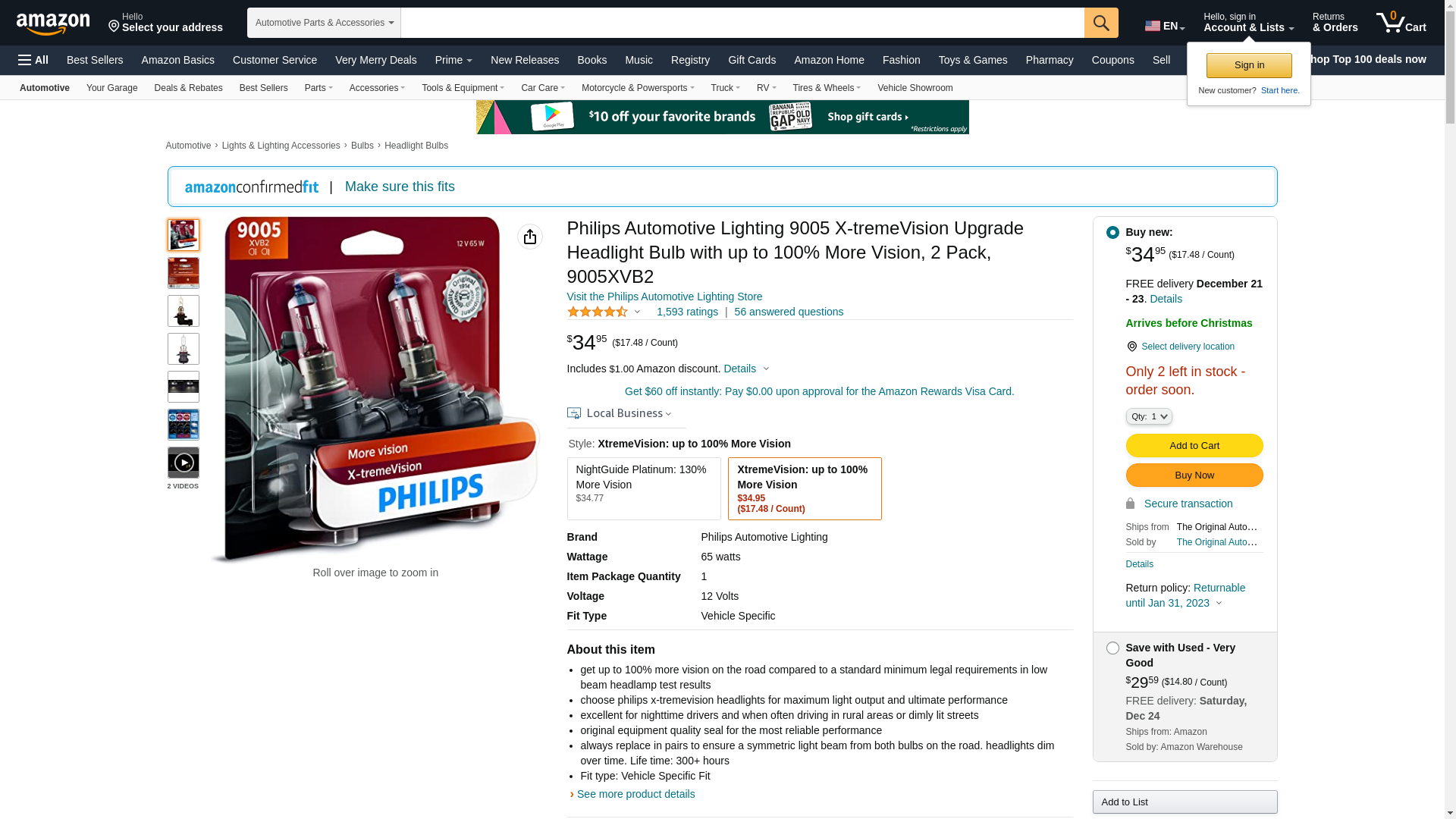 ![]() bulbs.com | 9005XVB2 | 1 | Clearance Item | 1 | 1 @ $41.18 |