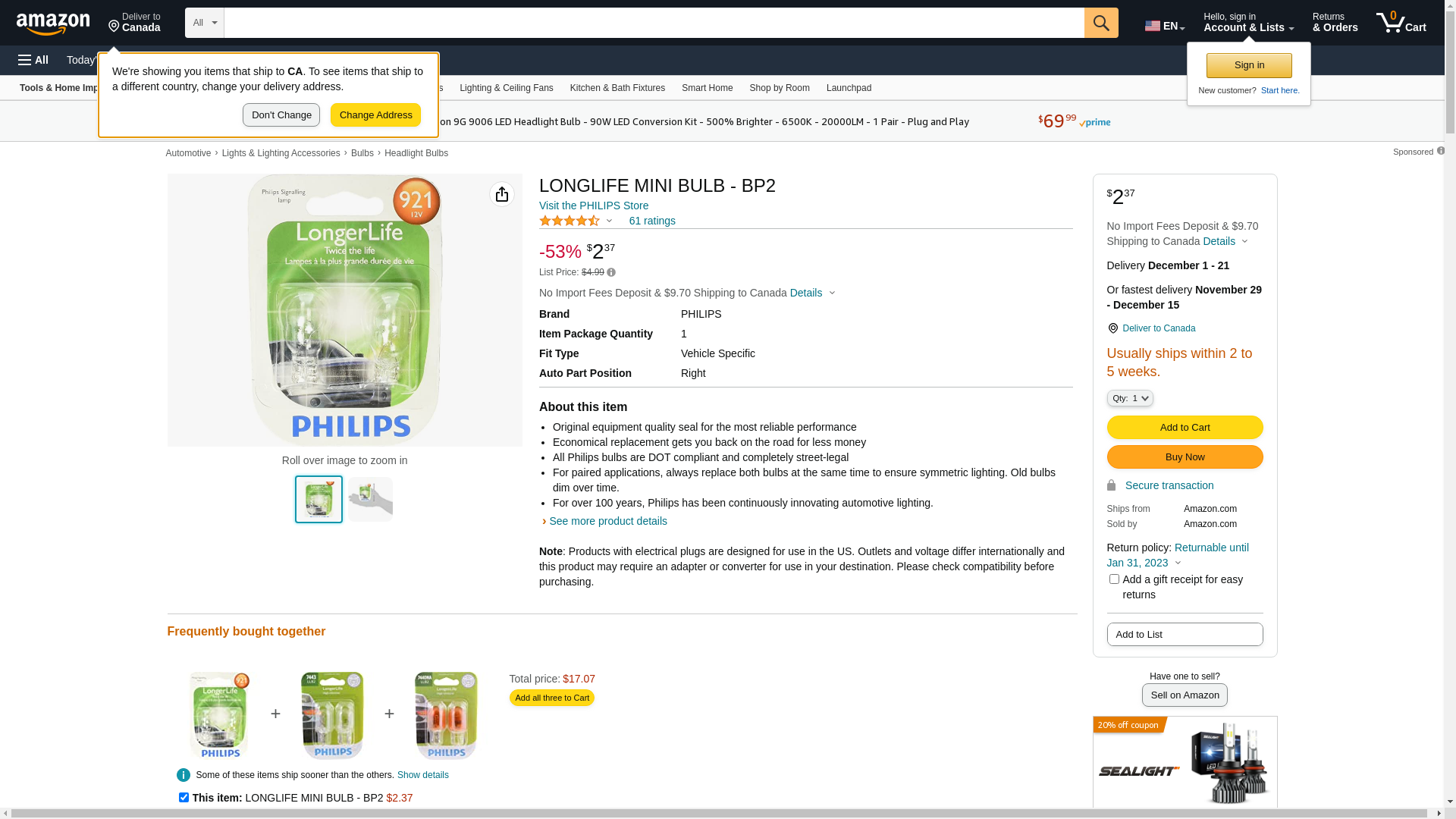 ![]() bulbs.com | PA-921LLB2 | 1 | -2 | 1 | 1 @ $3.98 |