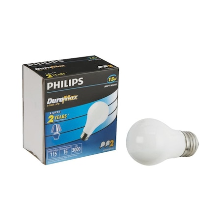 <p>Philips 15 Watt, 120 Volt, Soft White, appliance lamp design with aluminum medium screw base</p><ul><li>Longer life and smaller size perfect for use in kitchen appliance applications</li></ul><p>2 Pack </p>