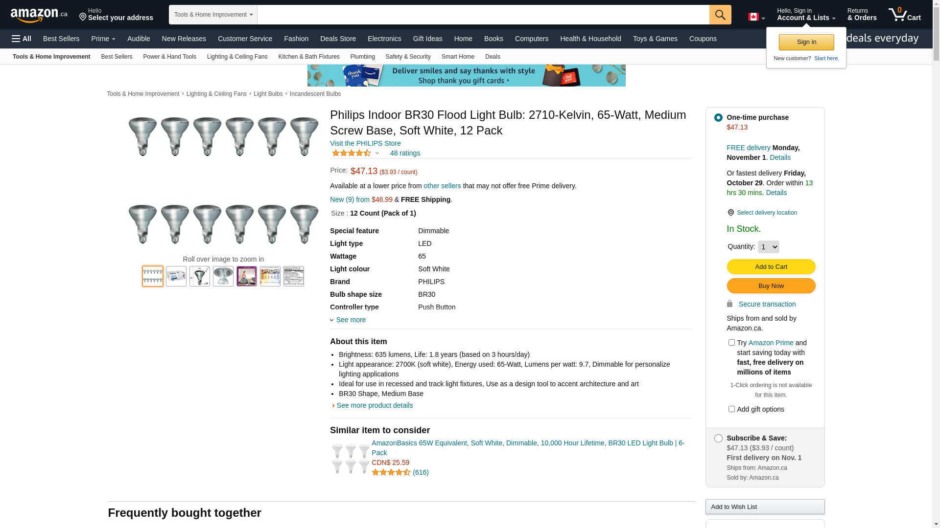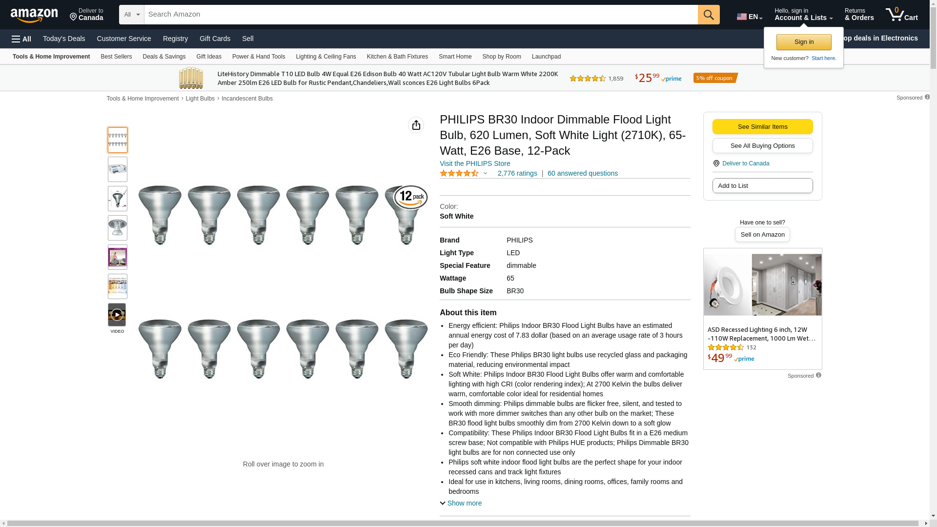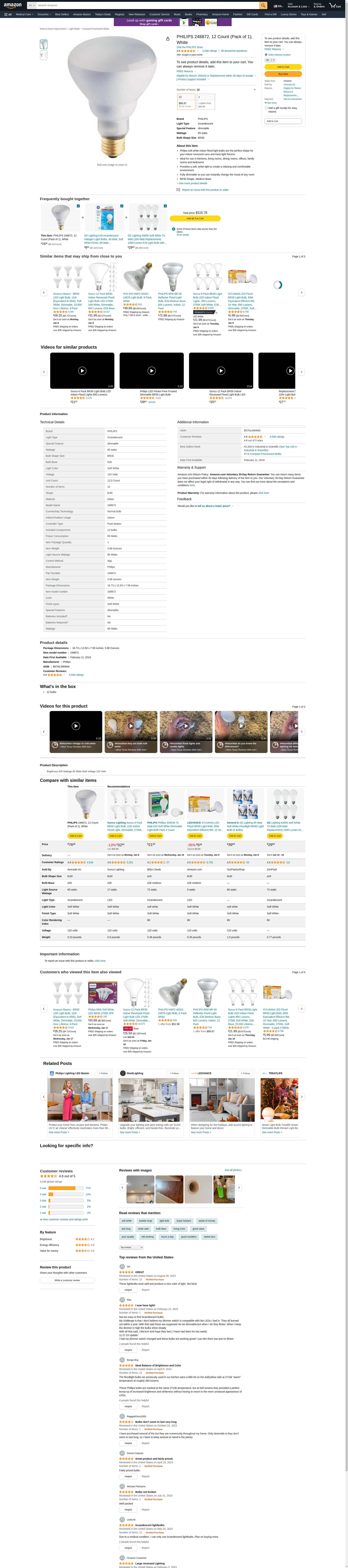 Philips 248872 Soft White 65-Watt BR30 Indoor Flood Light Bulb, 12-Pack