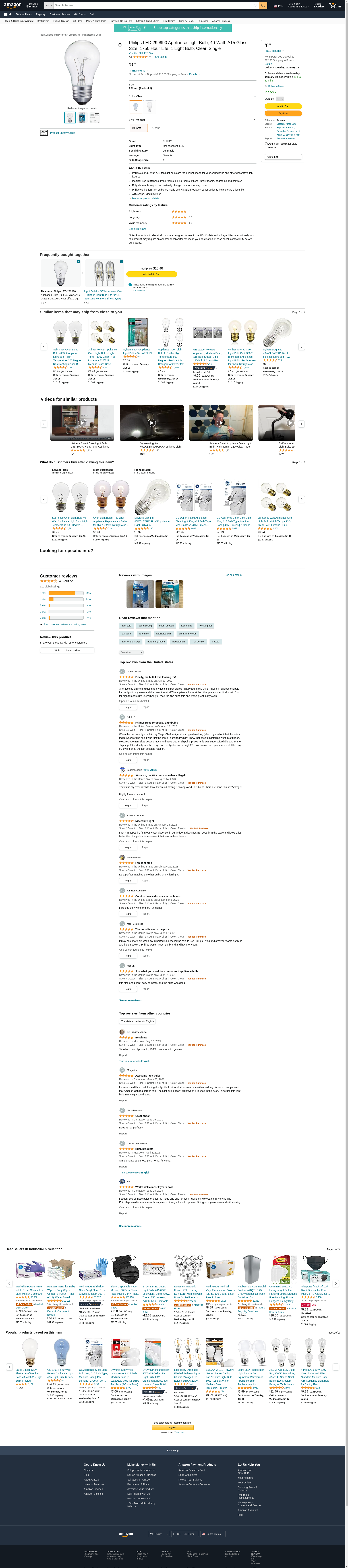 Philips LED 299990 Appliance Light Bulb, 40-Watt, A15 Glass Size, 1750 Hour Life, 1 Light Bulb, Clear, Single