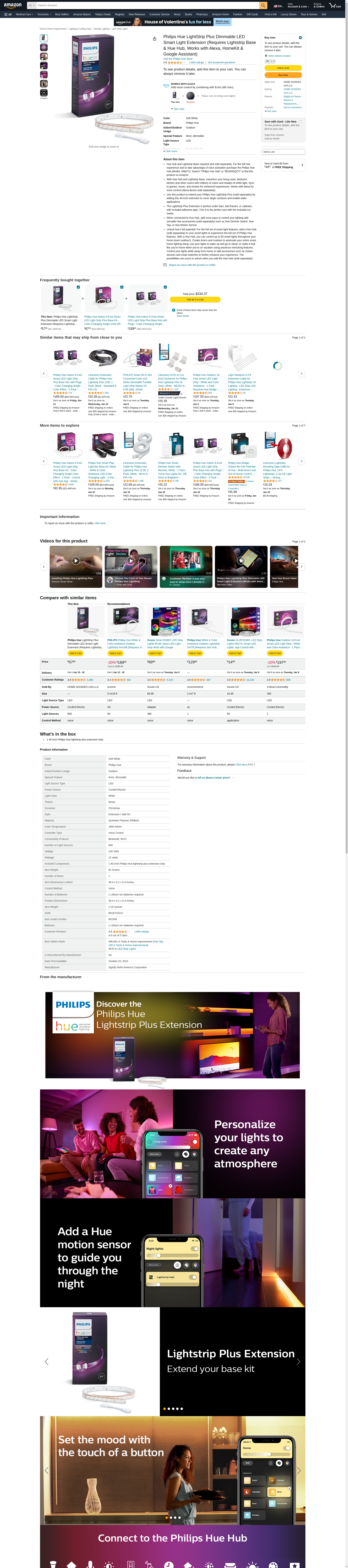 Philips Hue LightStrip Plus Dimmable LED Smart Light Extension (Requires Lightstrip Base & Hue Hub, Works with Alexa, HomeKit & Google Assistant)