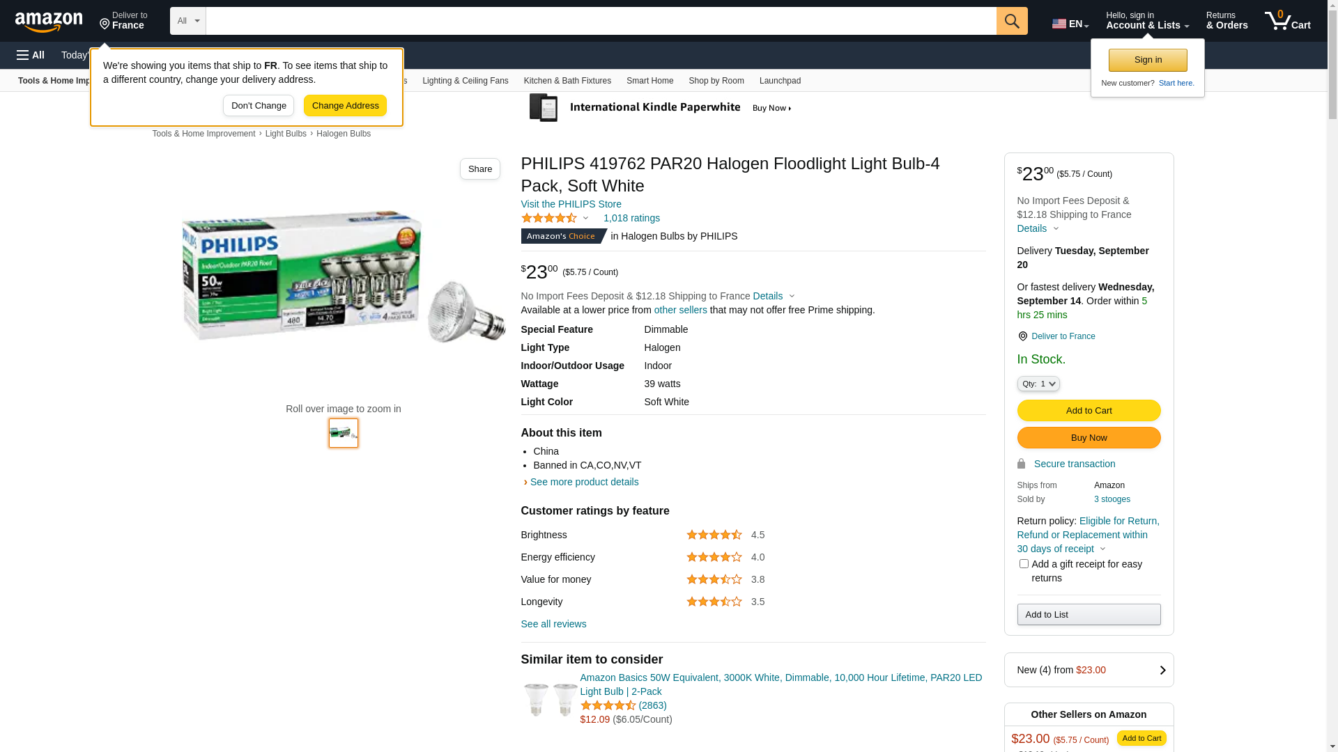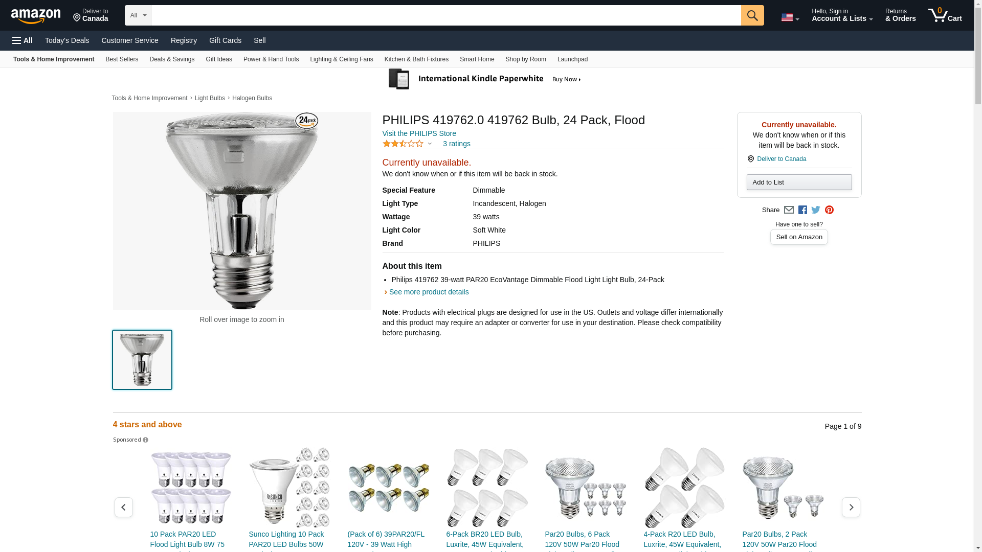 Philips 419762 EcoVantage 50 Watt Equivalent PAR20 Dimmable Flood Light Bulb, 4-Pack. Philips EcoVantage 39-Watt PAR2...