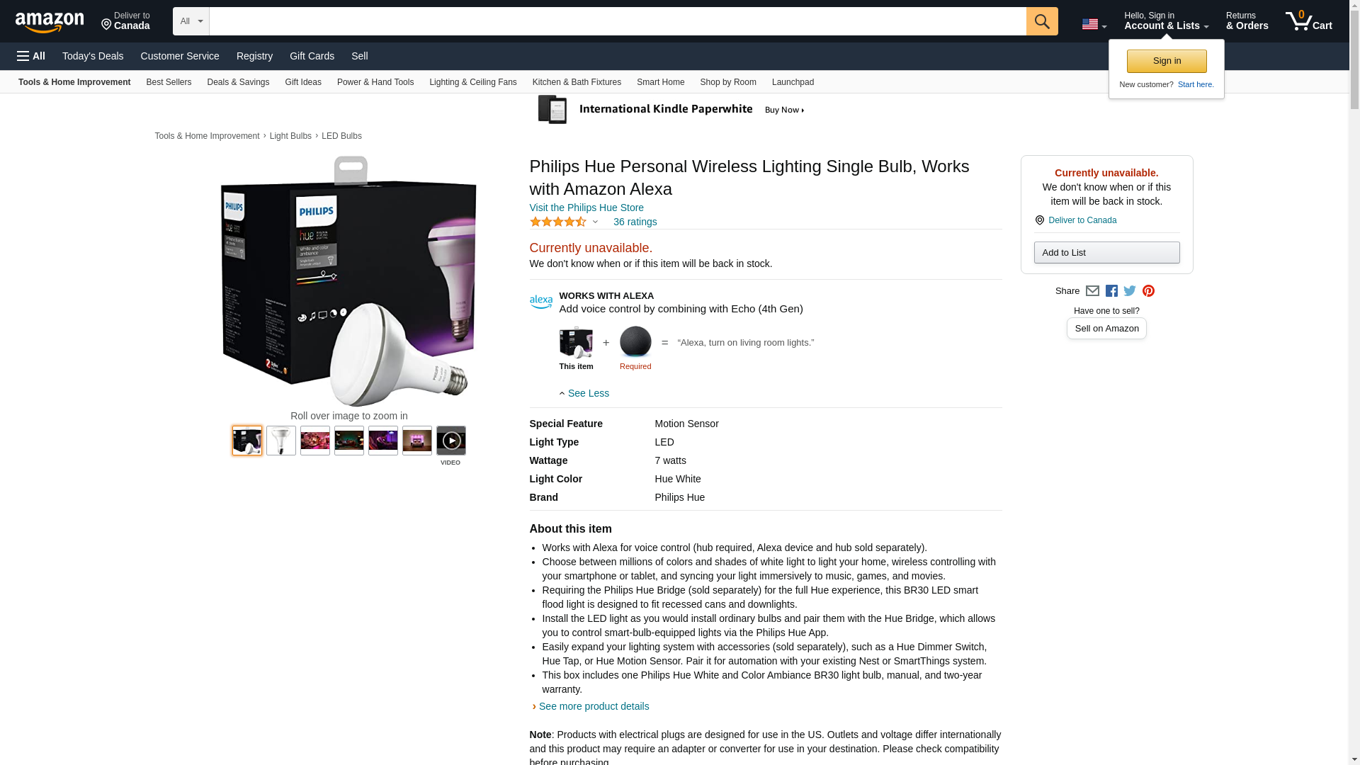 | Feature | Works with Amazon Alexa for voice control (hub required, Alexa device and Philips hub sold separately) |