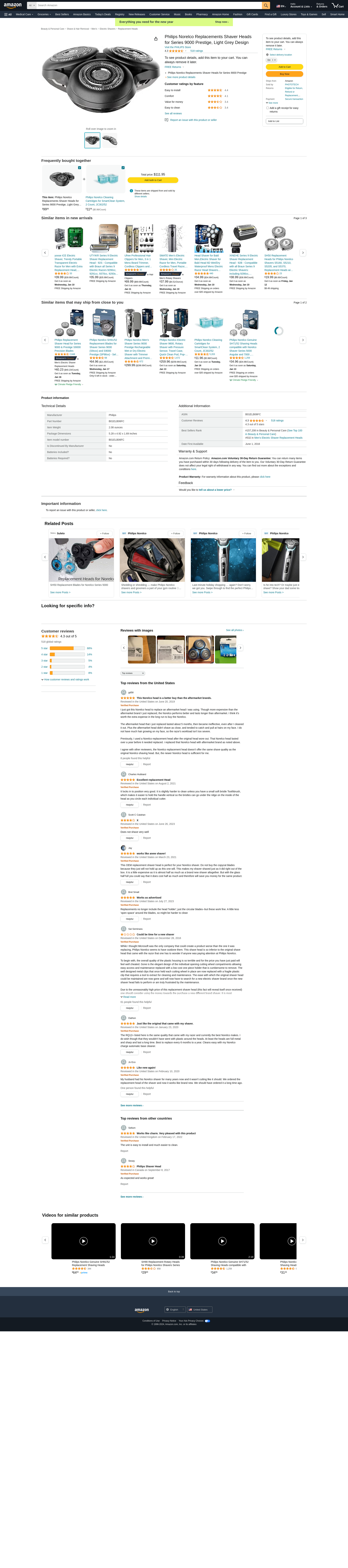 Buy Philips Norelco Replacements Shaver Heads for Series 9000 Prestige, Light Grey Design: Replacement Heads - Amazon.com ? FREE DELIVERY possible on eligible purchases