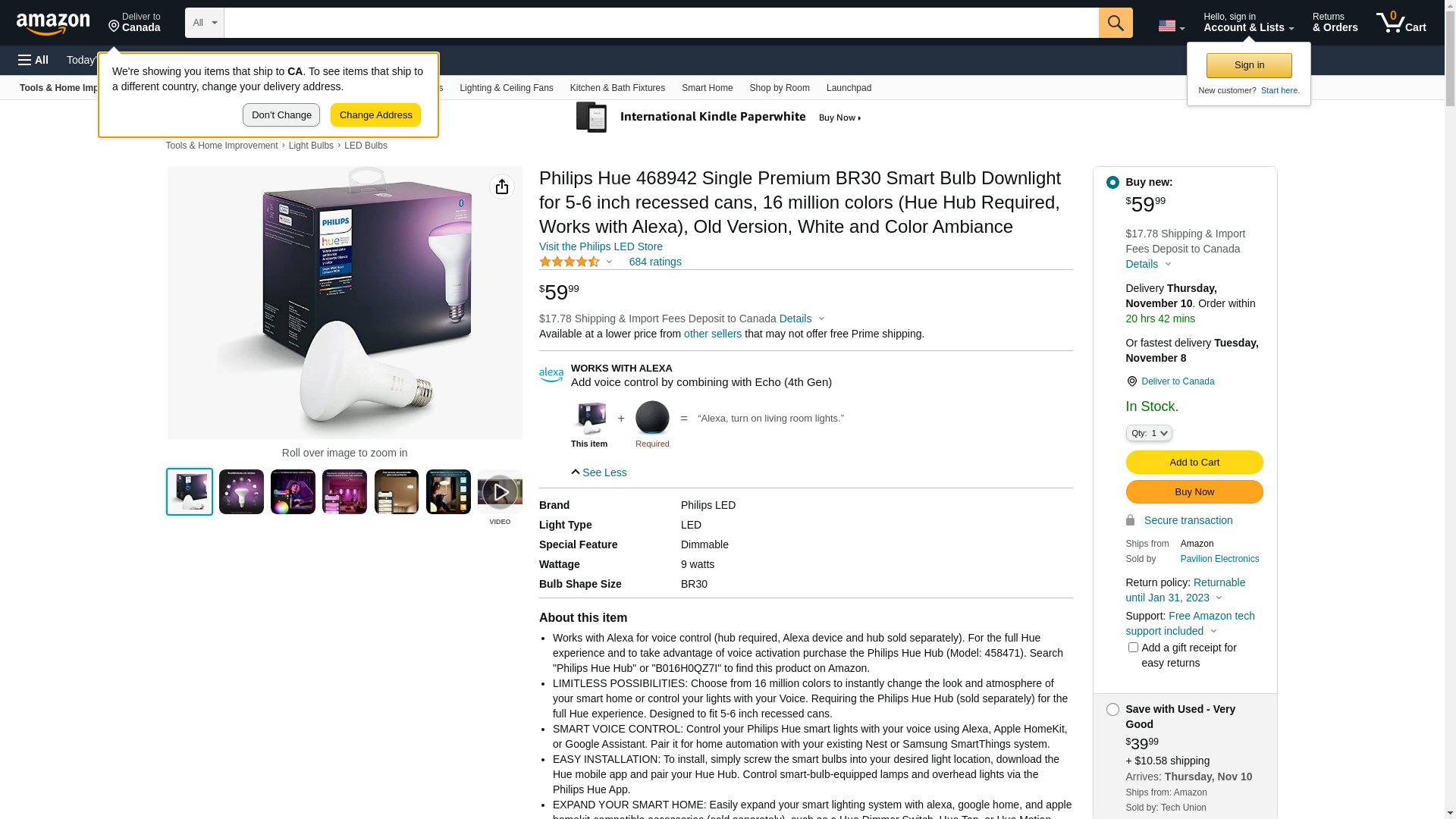 Philips Hue 468942 Single Premium BR30 Smart Bulb Downlight for 5-6 inch recessed cans, 16 million colors (Hue Hub Required, Works with Alexa), Old Version, White and Color Ambiance